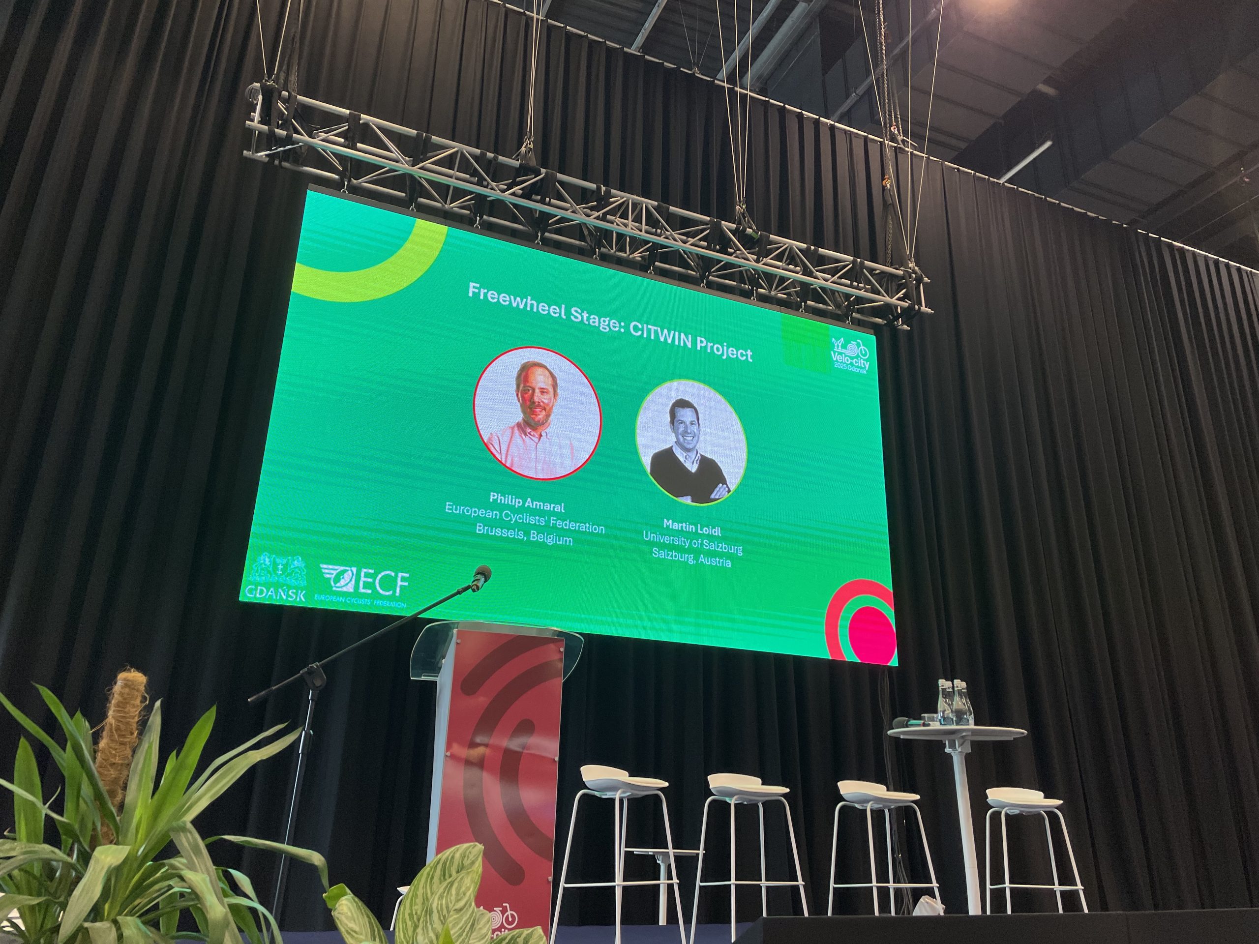 On Thursday morning, Martin, together with Philip Amaral from the European Cyclists’ Federation (ECF), took to the Freewheel Stage. Their focus was the EU project CITWIN, which is developing an open, transparent Digital Twin for urban mobility. Representatives from municipal administrations showed great interest – many are currently struggling with proprietary systems that offer little insight into their functionality and are perceived as black boxes. The open architecture of CITWIN was regarded as an important step forward.